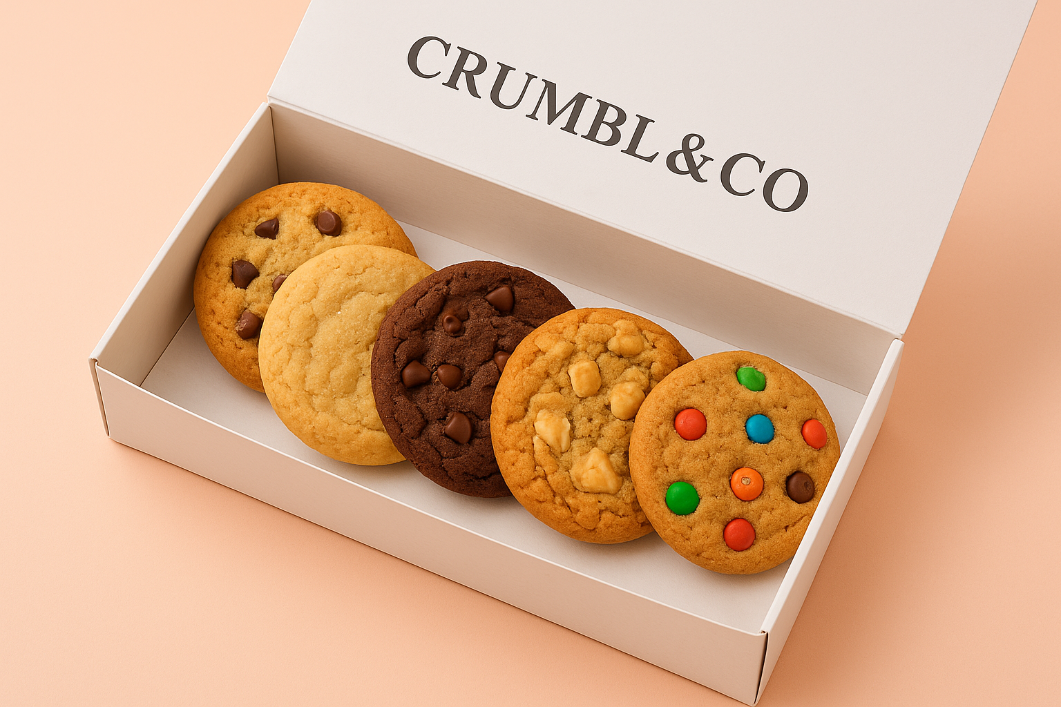 Choose up to 6 of your favourite cookie masterpieces and enjoy them all together in one irresistible box.